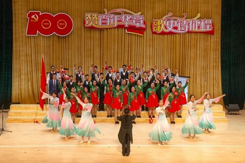 一百年的光辉历程向世人昭示:只有共产党,才能救中国。只有共产党,才能发展中国。只有共产党,才能复兴中国。演出在全体演员和观众齐声合唱《没有共产党就没有新中国》的激越豪迈的歌声中结束。