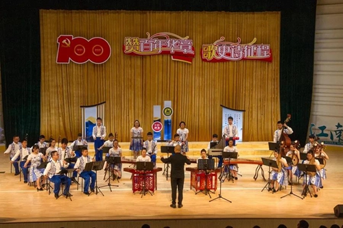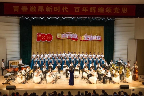 6月29日,无锡市江南中学在新城分校音乐厅举行了 “赞百年华章,歌史诗征程”庆祝建党100周年文艺演出。教育局和兄弟单位领导,学校理事会成员,家长代表以及全校教师共聚一堂,庆祝中国共产党的百年华诞。