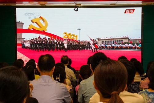江南中学师生积极收看了这场激动人心的直播。学校开展一系列活动,引导广大青少年厚植爱党爱国情怀,学党史、强信念、跟党走,把青春和力量,献给党、献给祖国。
