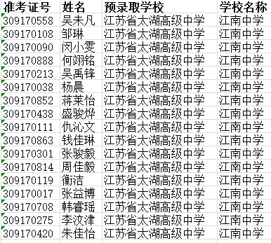 江南中学2018年无锡市区热门普通高中分配生名单公示