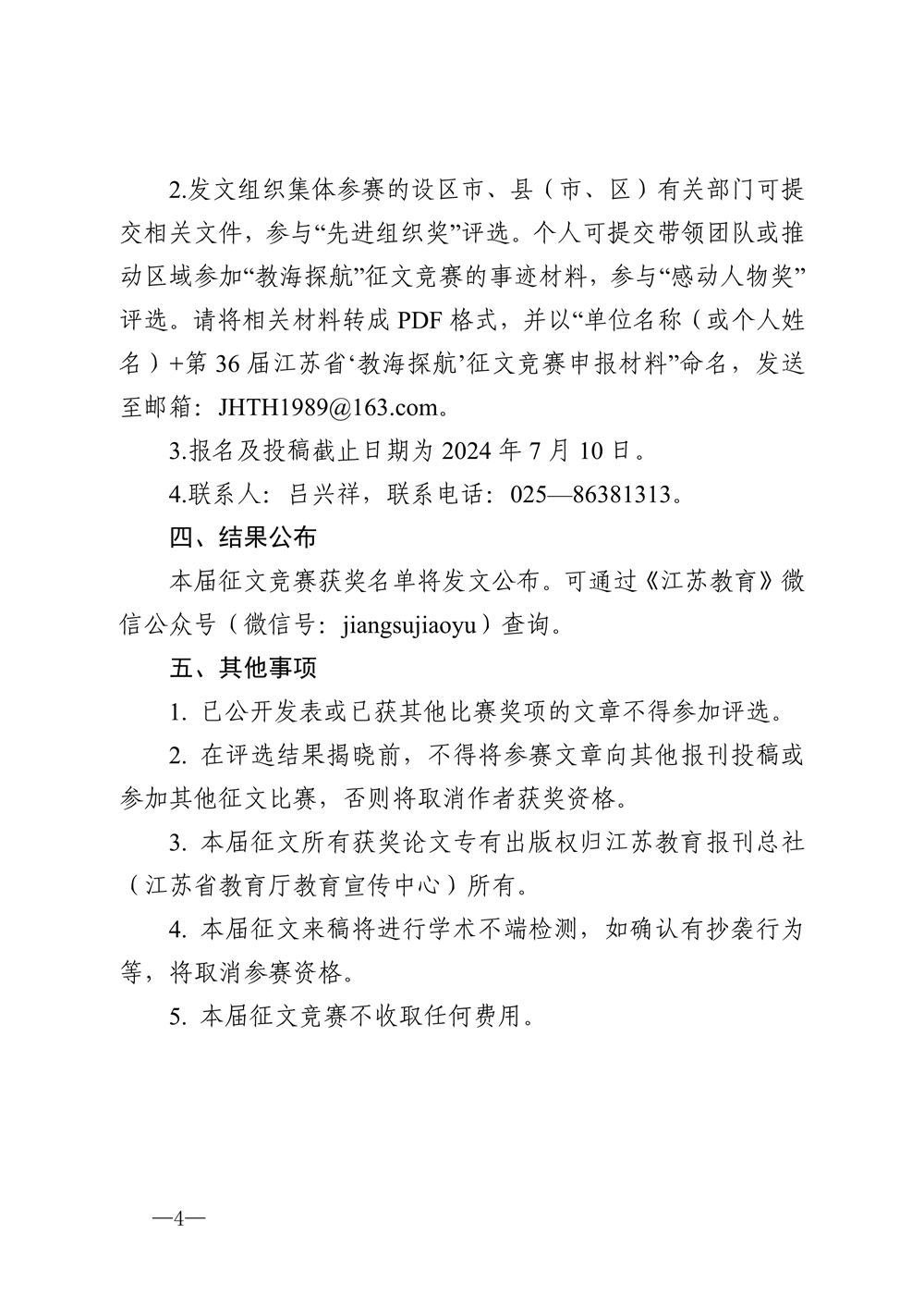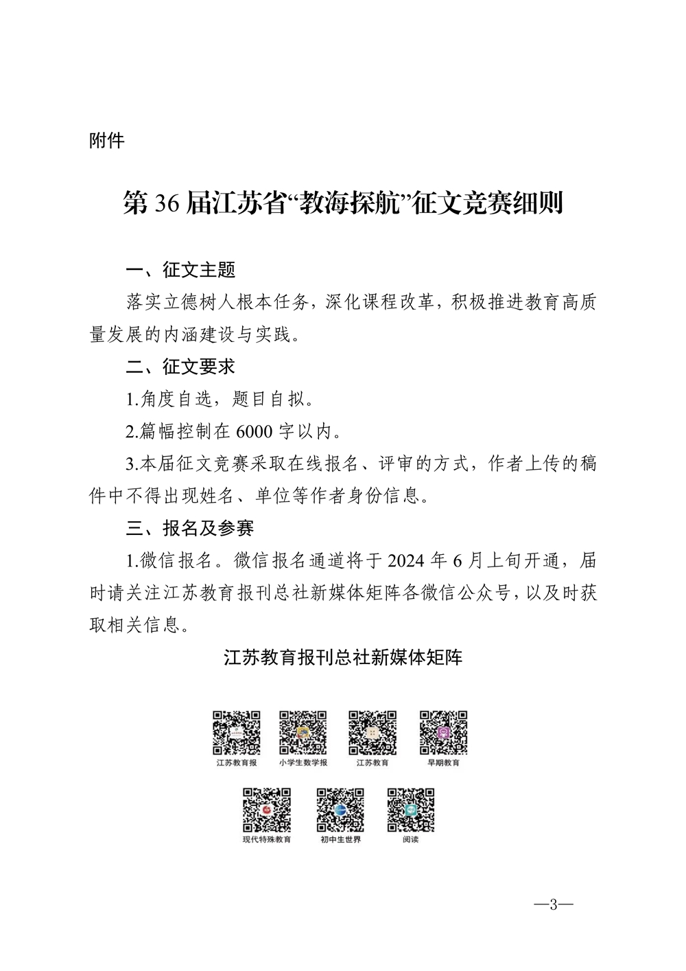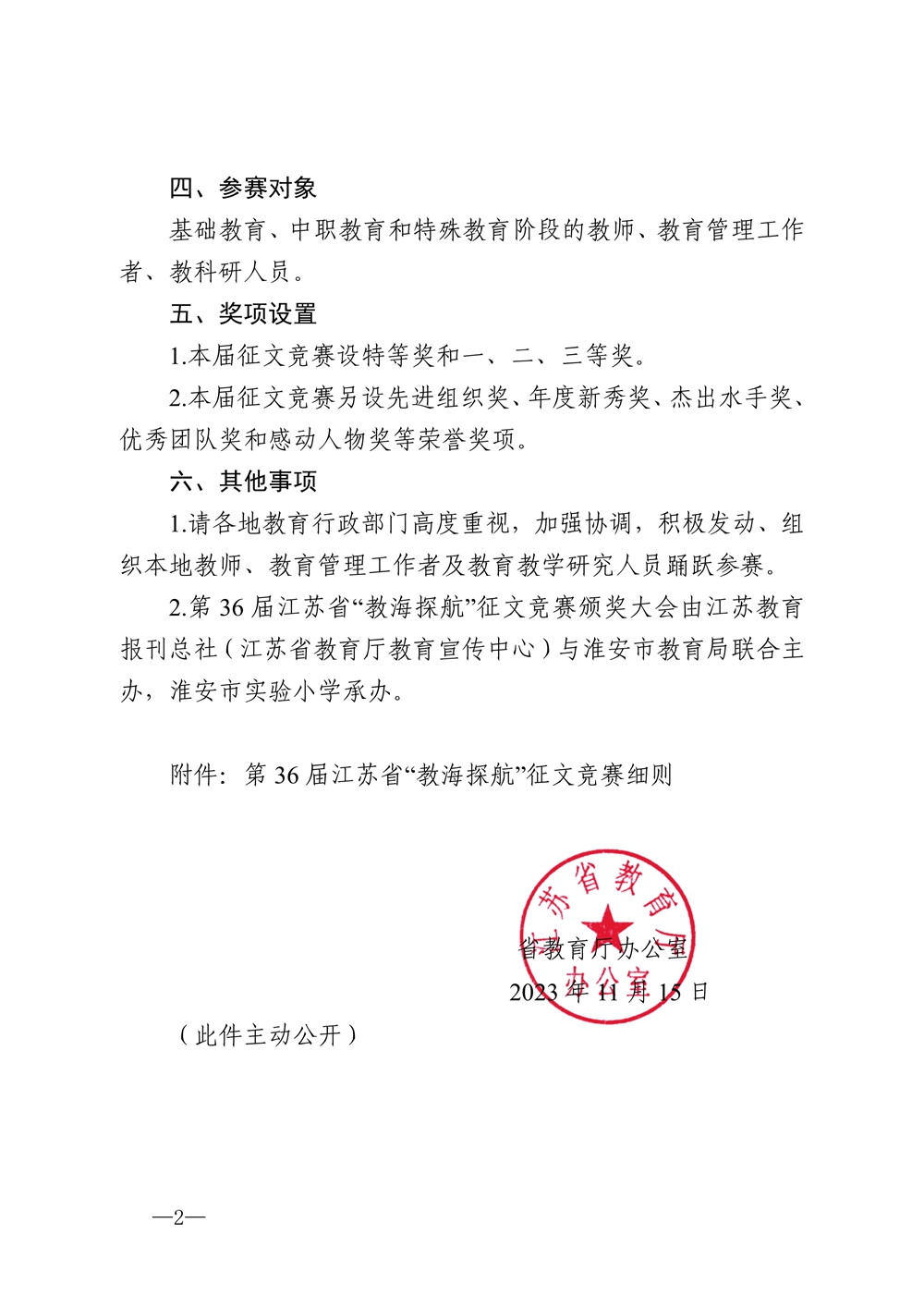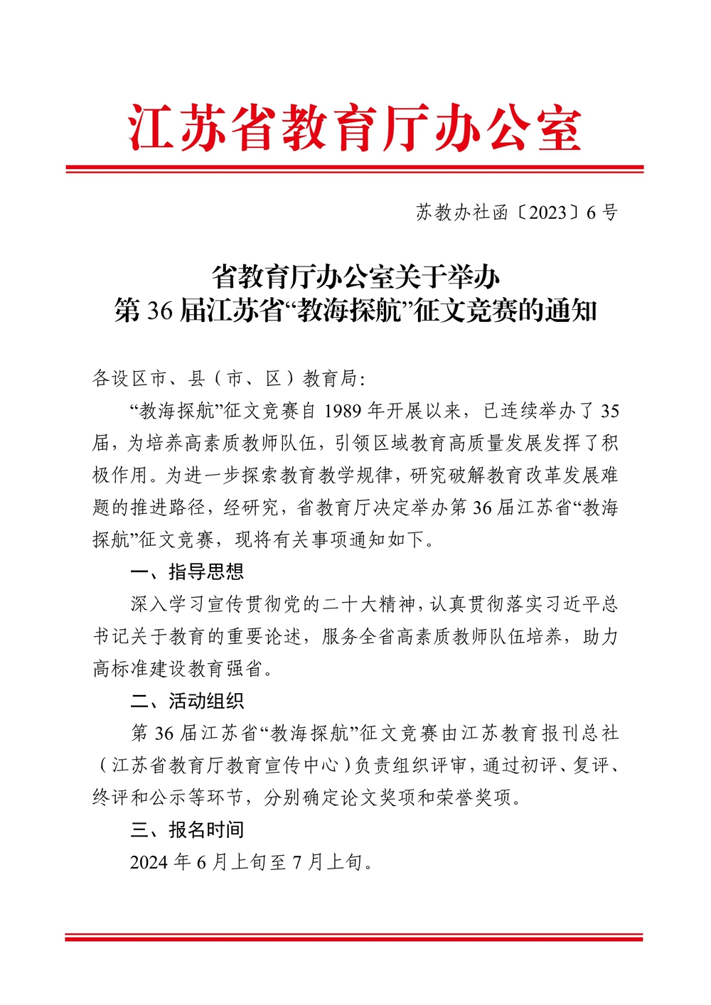 省教育厅办公室关于举办第36 届江苏省“教海探航”征文竞赛的通知