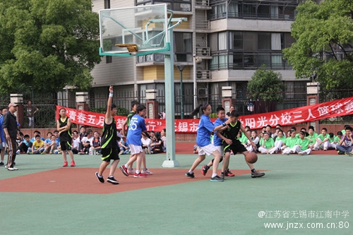 青春五月,热浪翻滚。在江南中学的篮球场上,初一初二的同学们尽情挥洒汗水,在三人篮球赛中拼出精神,比出水平,更赛出一个集体的团结力。