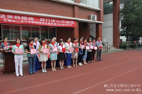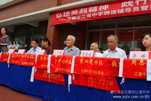 英雄中队是一面旗帜,指引着少先队员前进的方向。在成立的26个英雄中队里,有省级潘多中队、张闻天中队,有市级周培源中队、周祖龄中队,还有卜仲谟、丁晓兵等时代楷模命名的校级中队。今年最大的亮点是在征得了无锡烈士高云燕的母亲边菊珍阿姨的同意后,首次在学校成立了高云燕中队。通过成立一批英雄中队,让同学们寻找到差距,从而做到心中有榜样,前进有动力。在仪式上,学校还聘请了秦邦宪故居、张闻天旧居、顾毓琇纪念馆、革命烈士陵园、无锡博物院科技馆的讲解员担任学校的校外辅导员,充分挖掘社会力量,不断拓展多元化的校外育人基地,让坚持了21年的英雄中队建设不断在继承中发展、创新。