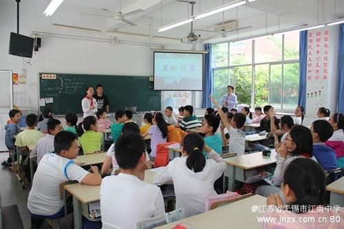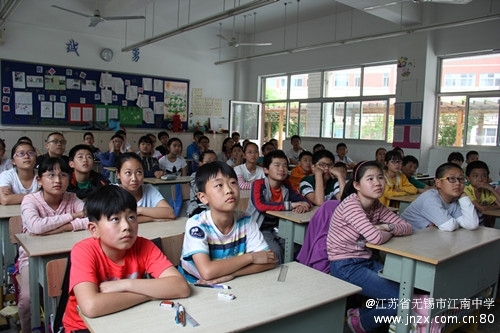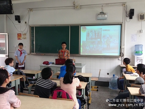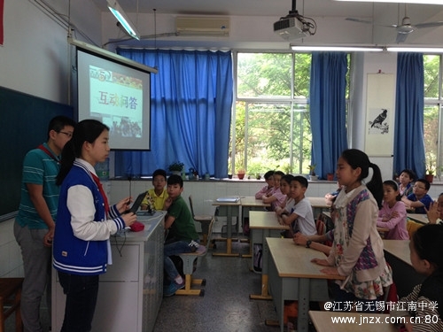 能走进母校初一初二的团员学生感到非常自豪,很用心地准备,亲自制作了PPT。在活动中,初一的同学回首了一年前自己面临的选择,如何认真刻苦地迎接小升初,鼓励大家要全力以赴,证明自己。随后,初二的同学们结合PPT,通过一系列精彩纷呈的图片,从初中的课程设置、素质拓展活动、丰富多彩的社团、美好的校园生活、班级文化、初中少先队员的新追求等方面详细介绍了自己的收获和感悟,还向小学毕业生提出了自己的建议和期望,希望他们奋力一个月,以优秀的成绩升入江南中学。互动问答环节是小学生最感兴趣的,同学们积极踊跃举手,从伙食、老师的态度、作业量、考试的次数、春游秋游、到校时间等他们关心的问题,一一寻求答案,当获得的答案是超出他们的预期时,全班会集体鼓掌,高潮一浪接着一浪。最后,在江南中学的微电影中活动画上了圆满的句号。