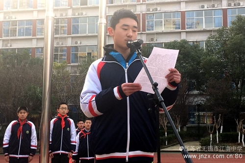 最后,我想用一句话来结束我今天国旗下的发言:在江南,进步是美丽的,成长是快乐的。谢谢。