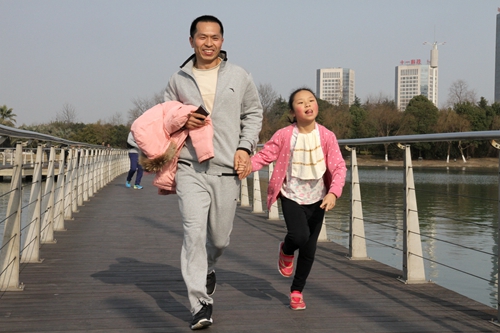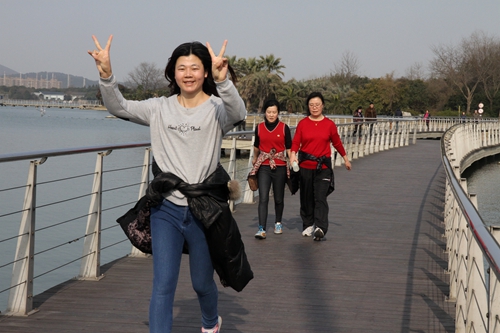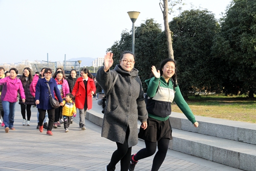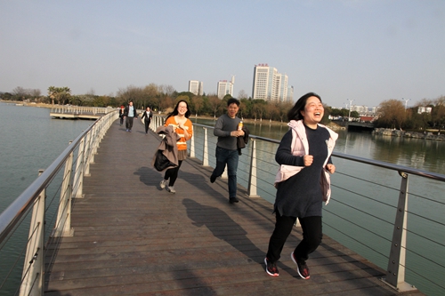 随着出发号令的响起,大家昂首阔步进发。兴奋与期待写在每个人的脸上,置身于水天一色的蠡湖之畔,大家尽情享受冬日暖阳。清风徐来,欢歌笑语顿时让寂静的环湖路充满生机。