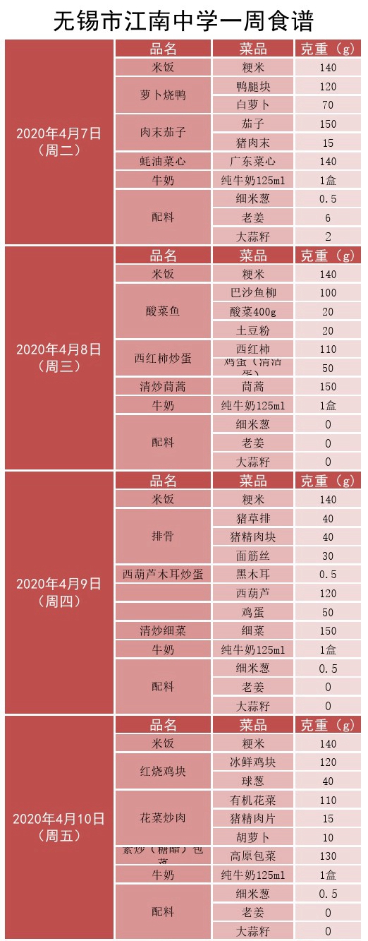 菜单(2020.4.7—4.10)