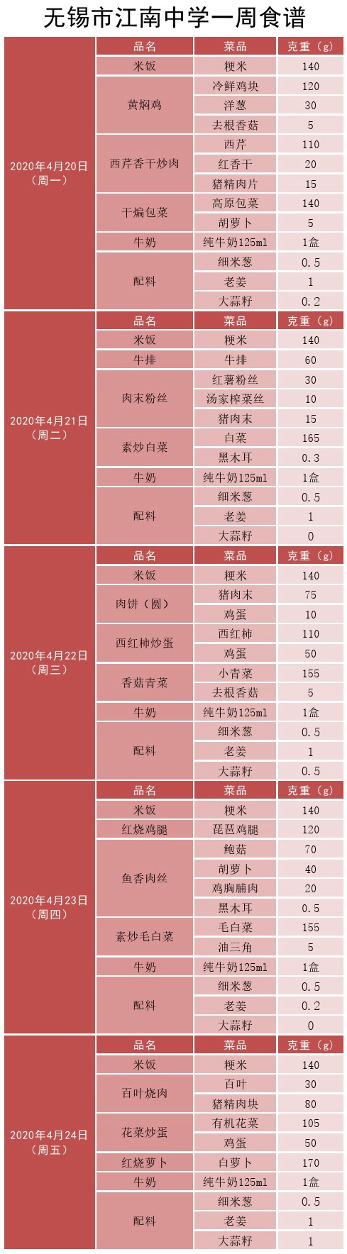 菜单(2020.4.20—4.24)