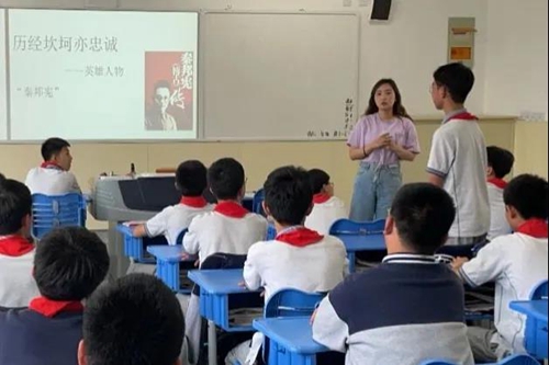 教工团员精心备课,根据英雄中队开展的活动和少先队员生活实际,从介绍英雄的事迹到讴歌英雄崇高的精神品质,让少先队员们切实感受到榜样就在身边,英雄精神从未远去,让青少年党史学习教育落地生根。