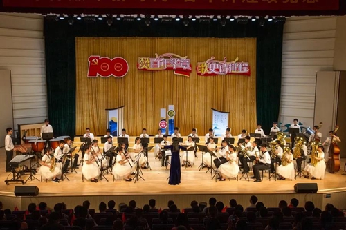 6月29日,无锡市江南中学在新城分校音乐厅举行了 “赞百年华章,歌史诗征程”庆祝建党100周年文艺演出。教育局和兄弟单位领导,学校理事会成员,家长代表以及全校教师共聚一堂,庆祝中国共产党的百年华诞。