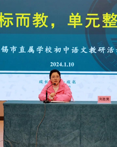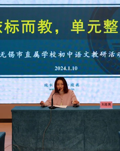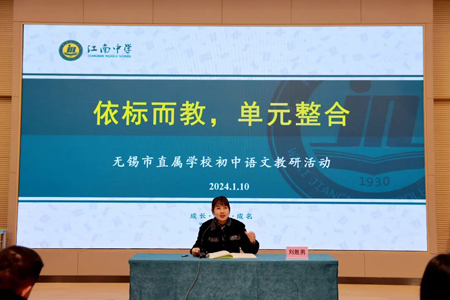 1月10日,无锡市直属学校初中语文“依标教学”研讨活动在江南中学阳光分校举行,市初中语文教研员刘胜男老师莅临指导,无锡14所中学语文教师参加研讨。
